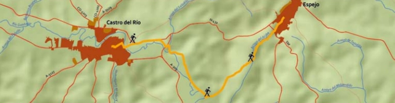 Salimos de Castro del Río por el Cuartel de la Guardia Civil. Dejándolo a nuestras espaldas y también una gasolinera, tomamos una calle hasta llegar a una rotonda donde hay una enorme silla. Giramos a la derecha y por el puente cruzamos el río Guadajoz. Nos incorporamos a la carretera N-432 y por su arcén derecho continuamos 1,5 kms. Nada más pasar el km 313 dejamos la carretera por un camino a la derecha.