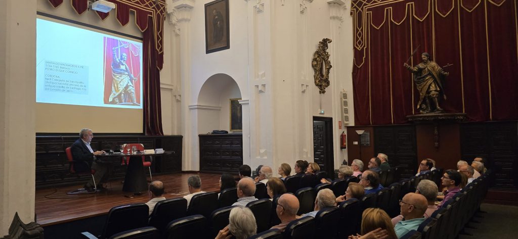 En palabras del actual Presidente de la Asociación: ” Tengo que reconocer que cuando Isidro me propuso la temática de esta conferencia inaugural me quedé muy impactado ya solo por lo que el título transmitía: cuantas veces nos cruzamos en Córdoba con la figura de Santiago Apóstol y nos somos conscientes de ello, incluso para personas avezadas en la cultura jacobea”.